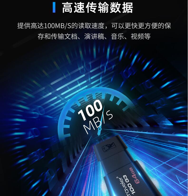 kingston金士頓官方旗艦DT100G3 64g高速u盤 3.0個性定制移動U盤大容量DTX 電腦商務辦公 正品優(yōu)盤學生正版