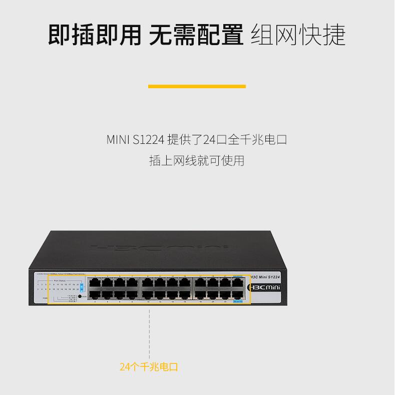 H3C華三Mini S1224 24口全千兆交換機(jī)企業(yè)級(jí)無(wú)管理非網(wǎng)管網(wǎng)絡(luò)交換器監(jiān)控防雷分線(xiàn)器替代S1324G
