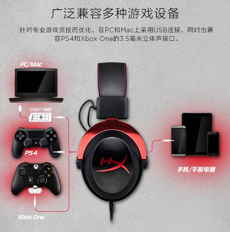 金士頓HyperX Cloud II颶風(fēng)2 頭戴式電競(jìng)游戲耳機(jī)7.1有線(xiàn)吃雞耳麥